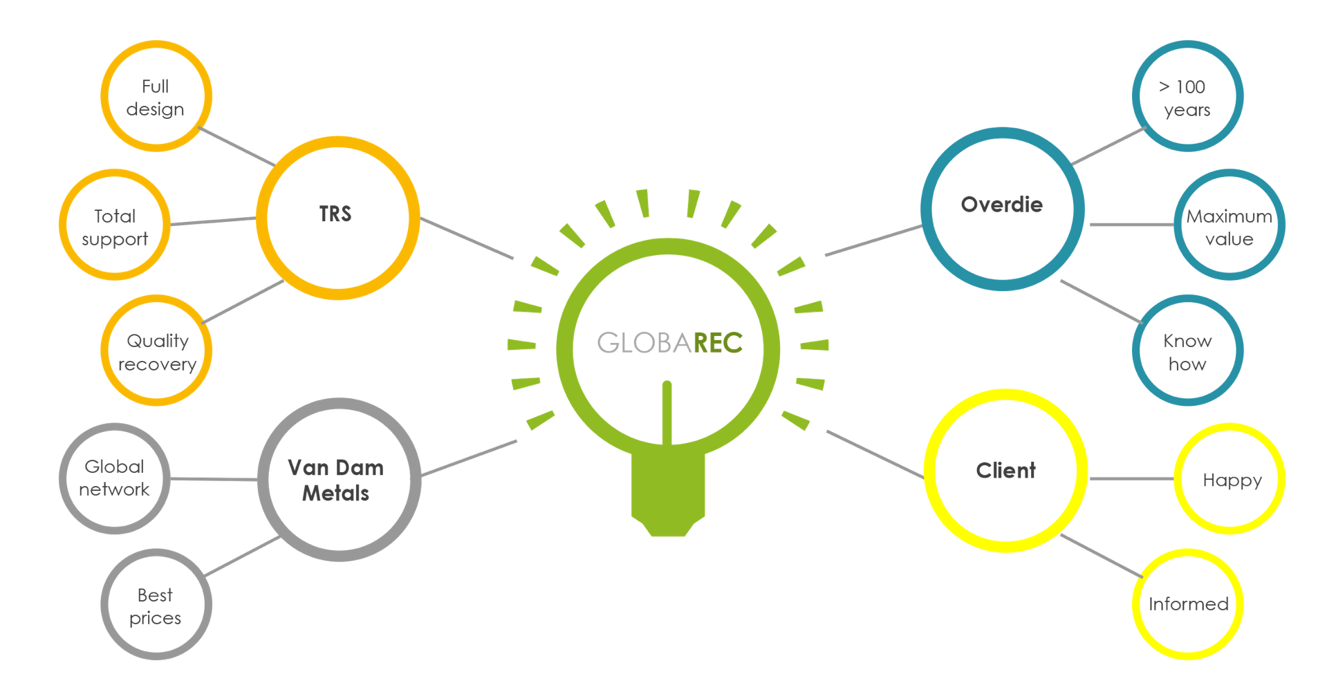 Overdie is well known as the metal processer of choice when it comes to maximising recovery yields and, with Van Dam Metals, we have a network of clients that allows us to seek the best prices in the market for the processed/refined metals.